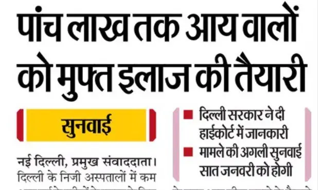 Plans are being made to increase the income limit of low income group (EWS) for treatment in private hospitals of the capital from the current approximately ₹ 2.25 lakh to ₹ 5,00,000 (five lakh). This information was presented in the Delhi High Court, where the advocate told that this topic has been discussed in the SK Sarin Committee meeting and necessary documents have been prepared.