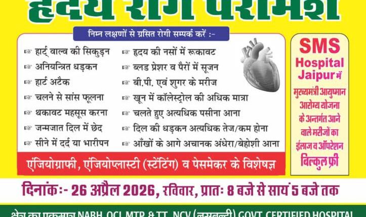 Free heart disease counseling camp on 26th April in Bhadra, SMS Jaipur experts will provide services.