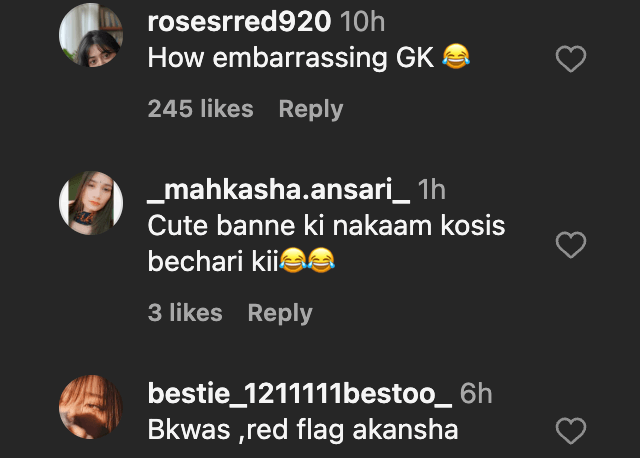 Another commented, “Soo embarrassing! No elegance, no standard – GK didn’t deserve her. He is mature & well behaved atleast.”