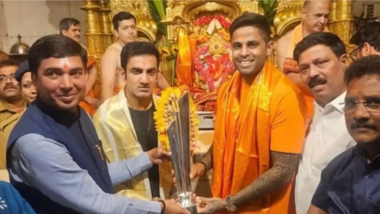 Suryakumar Yadav-Gautam Gambhir Arrive Siddhivinayak Temple: After winning the second consecutive title in T20 World Cup 2026, Indian team captain Suryakumar Yadav and head coach Gautam Gambhir reached the famous Shri Siddhivinayak Temple in Mumbai. Both of them placed the World Cup trophy at the feet of Bappa and took blessings and expressed gratitude for this historic victory.