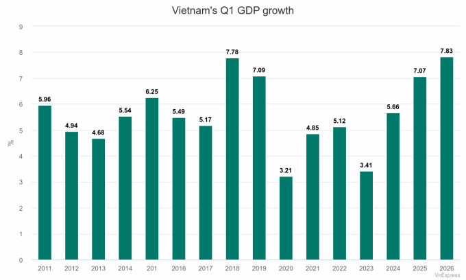 Assessing Q1 growth performance, Nguyen Thi Huong, head of the General Statistics Office under the Ministry of Finance, described it as “positive” amid increasingly unpredictable global developments and escalating armed conflicts.