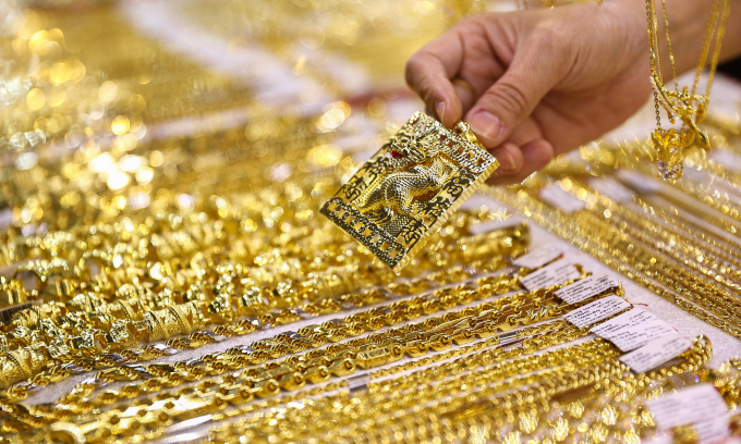 Gold jewelry on display at a store in Ho Chi Minh City. Photo by VnExpress/Quynh Tran
