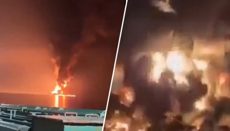 ‘Great war’ begins in the Gulf! American oil tanker burnt to ashes in Iran’s drone attack…watch the horrifying scene in VIDEO