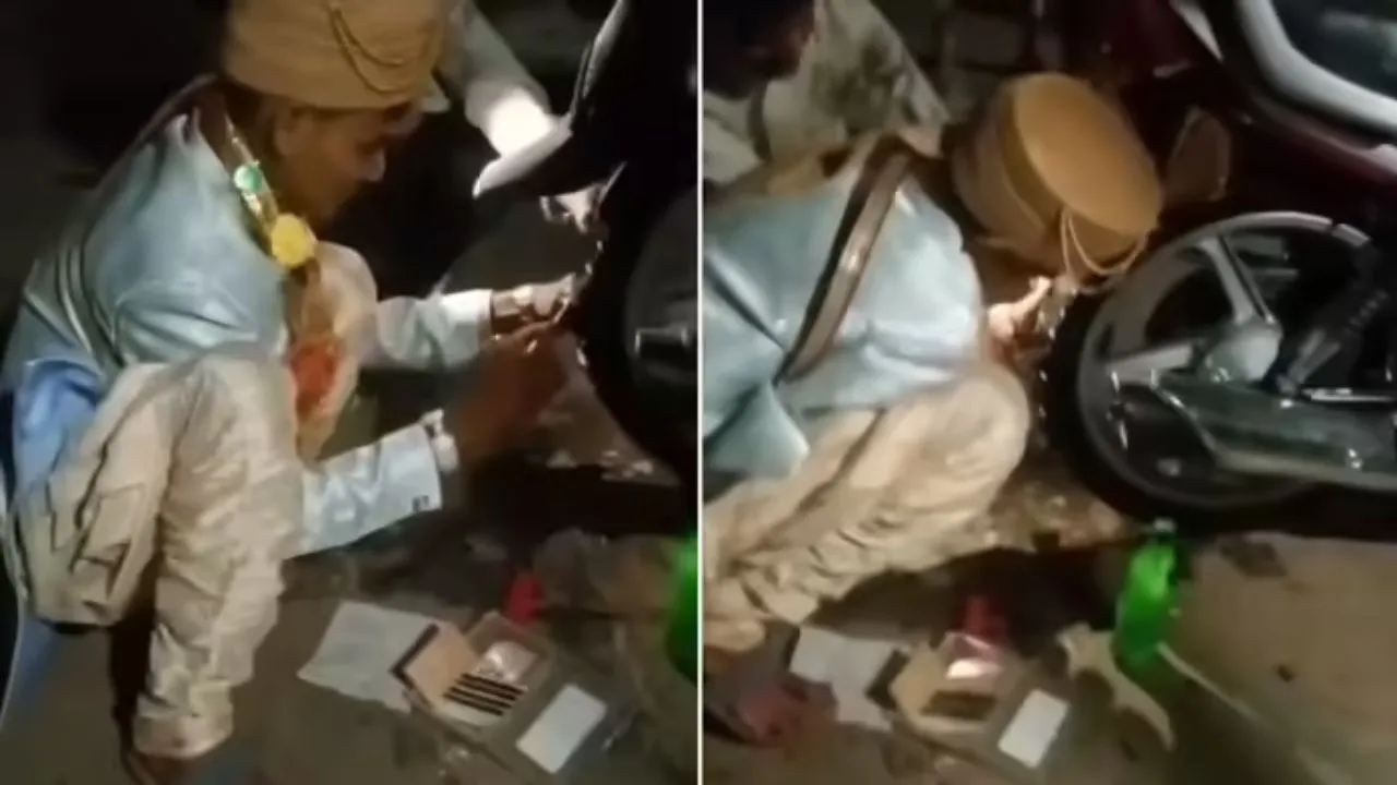 In this video which is spreading rapidly on social media, a groom was seen helping an unknown person by coming out of his wedding procession. This man was taking his ailing mother to the hospital, but his bike broke down on the way. Time was short and there was no one around to help.