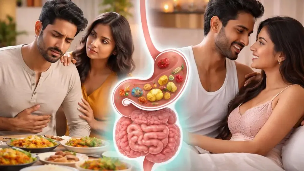 A healthy digestive system provides essential nutrients like zinc, iron, magnesium and vitamin B to the body. All of these are necessary for hormone production, blood circulation and proper functioning of nerves, which play an important role in sexual desire and performance. Due to heaviness and fatigue, the desire for intimacy decreases. Due to poor gut health for a long time, inflammation increases in the body and hormonal balance can get disturbed, which also affects sexual pleasure.