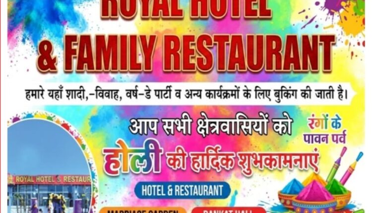 Located in Tehsil Bhadra on the occasion of Holi, the holy festival of colors. Royal Hotel and Family Restaurant Director of Shri Satish Sheoran has sent hearty greetings to all the people of the state and region.