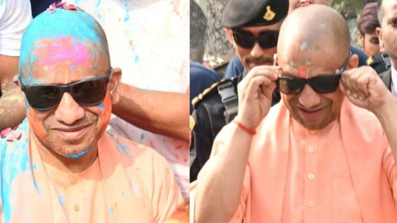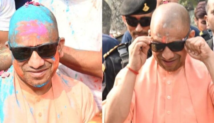 Holi colors spread on CM Yogi Adityanath, he showed a surprising style by wearing black glasses, watch video