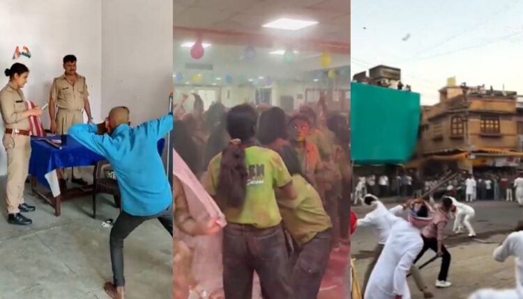 in some police station Dance If someone is doing it then someone is playing Holi with friends by tearing clothes. At some places, Holi was also played with sticks. Let us tell you about 5 such videos…