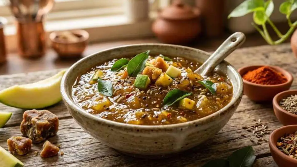 Sweet and sour chutney of raw mango will enhance the taste of lunch and dinner, will be ready in 10 minutes