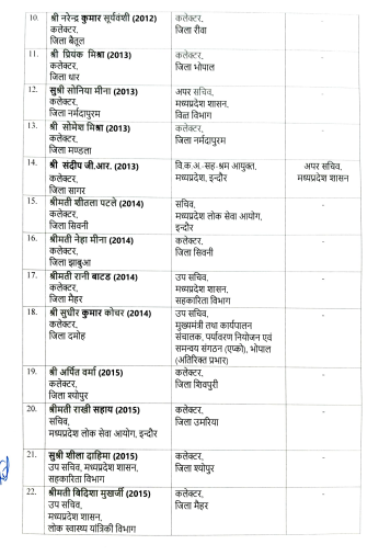These transfers will have a direct impact on the pace of development, law and order and effective implementation of public welfare schemes in the districts. The new collectors will be challenged to work with foresight while understanding the specific challenges and possibilities of their respective districts. It is expected that this comprehensive administrative reshuffle will prove helpful in taking Madhya Pradesh forward on the path of progress and will bring positive changes in the lives of the citizens of the state.