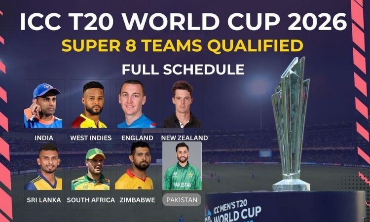 ICC T20 World Cup 2026 Super 8 Schedule: The group stage of the ICC T20 World Cup 2026 has now reached its decisive point and with Pakistan’s victory over Namibia on Wednesday (Pakistan defeated Namibia by 102 runs), the picture of Super-8 has become completely clear. The names of all the 8 teams that will advance to the next stage of the tournament have been finalised, after which cricket fans are now waiting for high-voltage matches.