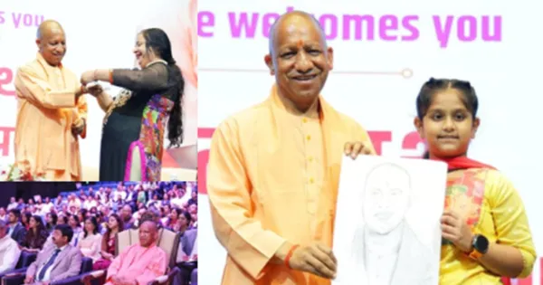 In the program, when a woman addressed Yogi as ‘Bhaiya’ on behalf of all the women of the state, the whole atmosphere became emotional. A girl had brought a sketch of the Chief Minister to the event, on which Yogi gave his autograph and brought a smile on her face.