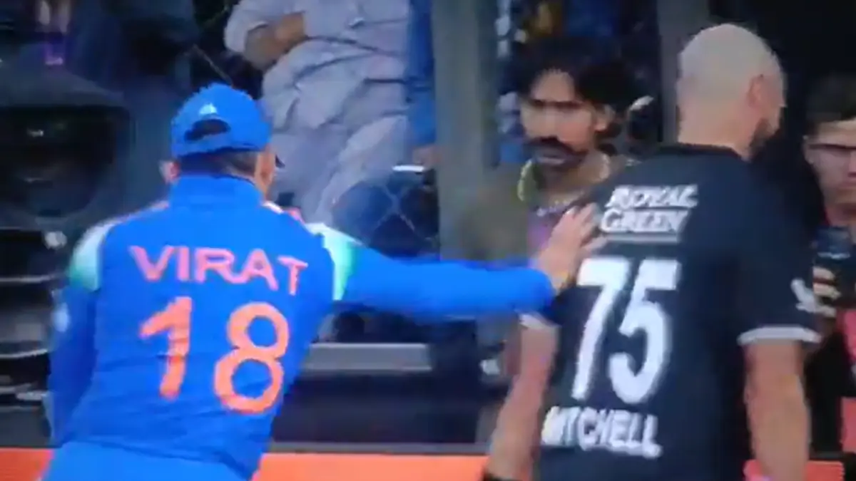 Delhi: A fun and sportsmanlike moment was witnessed during the third ODI match played in Indore between the Indian cricket team’s legendary batsman Virat Kohli and New Zealand’s star all-rounder Daryl Mitchell. After Mitchell’s dismissal, Kohli first applauded his century and then jokingly pushed him out of the field. This scene greatly entertained the spectators present in the stadium and Mitchell himself was also seen smiling.