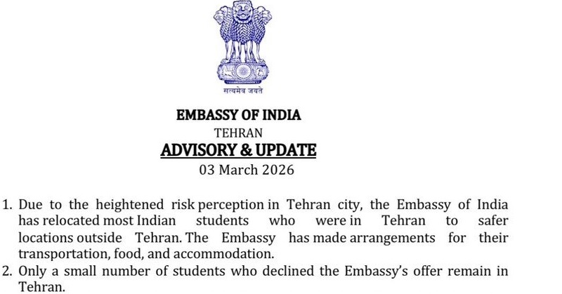 Delhi: The Embassy of India in Iran has taken proactive measures to ensure the safety of Indian students in Tehran, relocating most of them to safer locations outside the city.