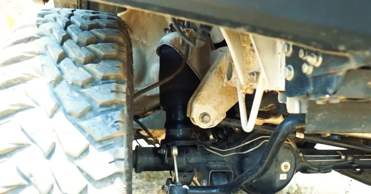 Moving ahead, he explains that the entire OEM coil spring setup of this Jimny has been removed and it has been replaced with airbags on all four corners. The host also highlights that this was possible as the Jimny comes with a separate shock absorber and coil spring layout instead of a strut assembly. Talking about the capacity of each airbag, he mentions that each airbag can handle 600 kg of weight at 100 PSI and 430 kg at 80 PSI, which is the normal operating pressure.