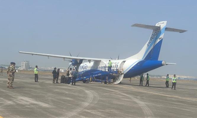 The flight, which was scheduled to land at 8:40 pm, touched down at 9:24 pm and was positioned at Bay No. 3 at 9:27 pm. All passengers were deboarded safely following the development, sources said.