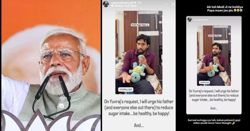 Influencer Yuvraj Dua’s plea for his ‘Modi-Paglu Papa’ to cut down on sugar gets a reply from PM Modi