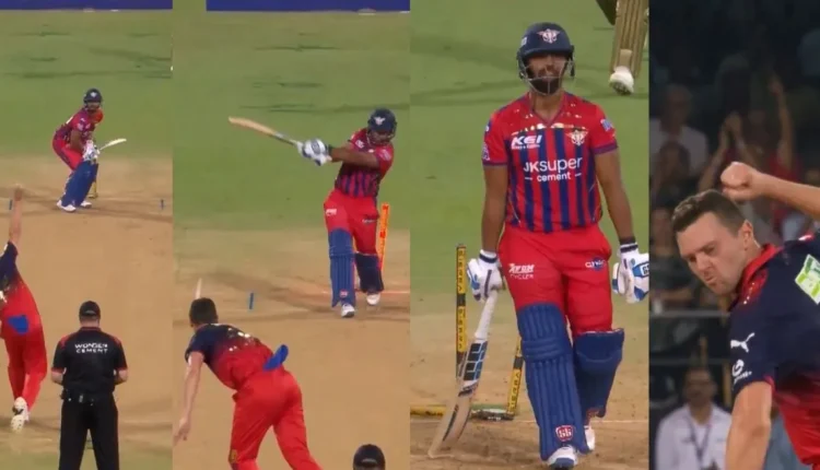 The ball was a classic pitch, bowled on a short length, with a slant against the left-handed batsman, with enough pace to stun him. Pooran, desperate to find redemption from a disappointing season, attempted to pull the ball past the mid-wicket boundary. However, lack of space and extra bounce limited him. A thin bottom edge dragged the ball onto the stumps, sending the bails flying and stunned silence in the LSG dugout. Pooran was out for just 1 run in 7 balls, a wicket that perfectly reflected his current struggles and Hazlewood’s complete dominance.
