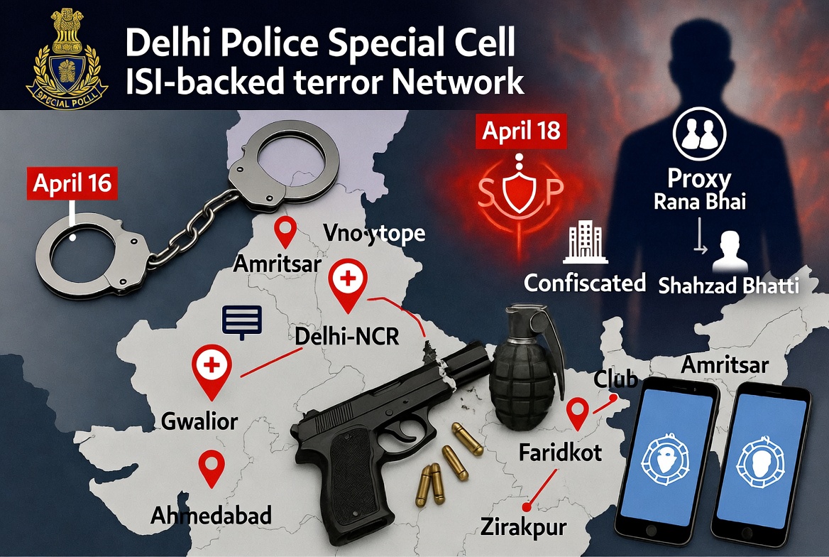 Delhi Police’s Special Cell arrested two operatives linked to Pakistan’s ISI-backed network for plotting grenade attacks and targeted killings across Delhi-NCR.