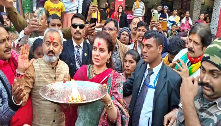 Tight security arrangements were made in the temple premises for Kangana Ranaut’s arrival in Deoghar. After taking the resolution according to the rituals by the pilgrim priests, the Shivalinga present in the sanctum sanctorum was worshiped. Other devotees were barred from entering the sanctum sanctorum while actress Kangana Ranaut was performing the puja. After which MP Kangana Ranaut performed Jalabhishek on Shivling and took his blessings.