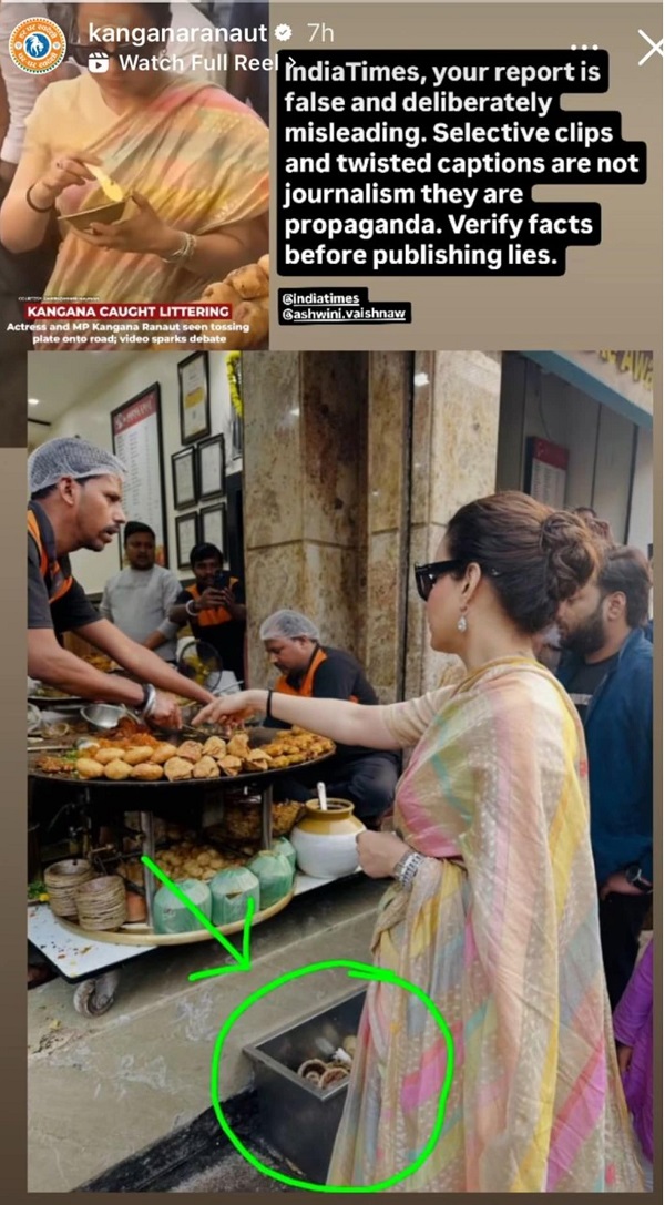 Kangana has shared her photo on Instagram story in which she is at Tikki stall. After this he has highlighted with arrows the dustbin where the used paper plates are kept. Kangana told that she has put her plate in the dustbin itself.