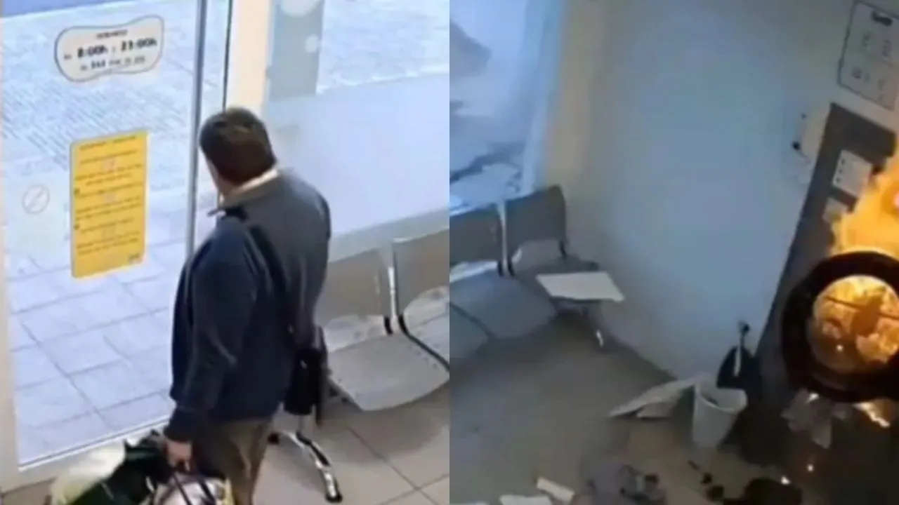 The explosion is so strong that the door of the machine completely breaks and shatters. If the person had stayed there for a few more seconds, his life could have been in serious danger.