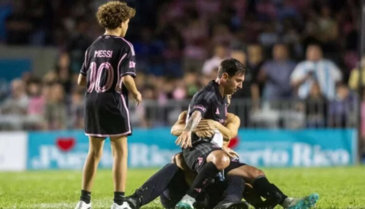 Lionel Messi knocked down by security during pitch invasion in Puerto Rico