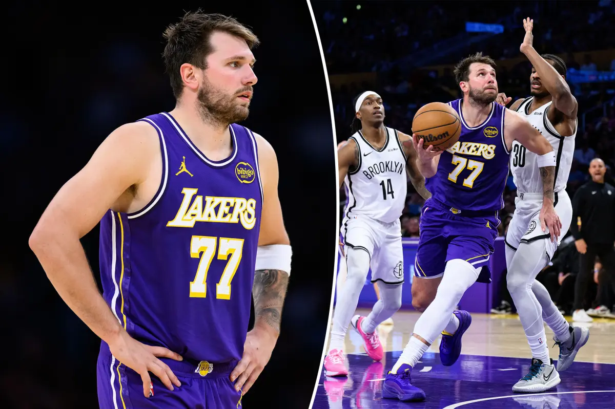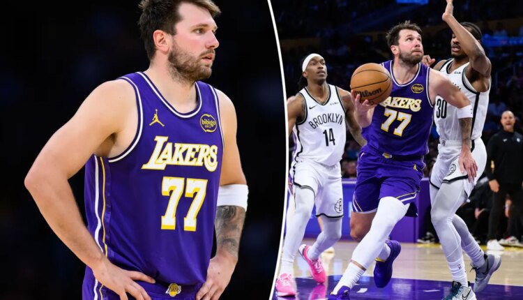 Luka Doncic (77) during the second half against the Brooklyn Nets at Crypto.com Arena. William Liang-Imagn Images