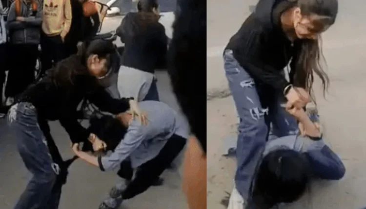 It can be clearly seen in the viral video that two groups of girl students are badly at loggerheads with each other. The matter did not just stop at an altercation, rather it reached the point of scuffle and fight. The girls are throwing each other down on the road and kicking and punching each other. The limit was reached when one girl grabbed the other girl’s hair and dragged her on the ground, while the other girl took out her belt and started hitting her hard.