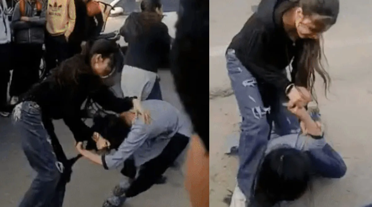 Riot broke out on the road, girl students went out of control