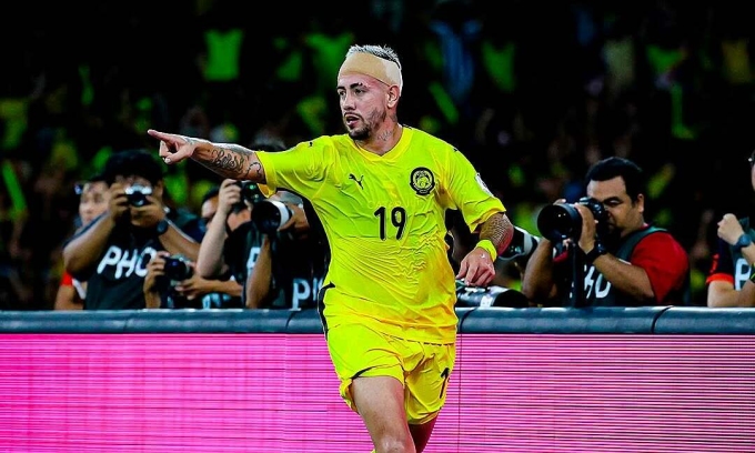 Malaysia naturalized striker Rodrigo Holgado celebrates his goal against Vietnam in the 2027 Asian Cup qualifying game on June 10, 2025. Photo by Instagram/@rodrigoholgado |