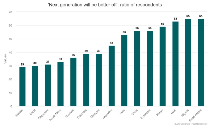 Globally, Saudi Arabia and Nigeria respondents were most optimistic about the next generation’s prospect with a ratio of 65%.