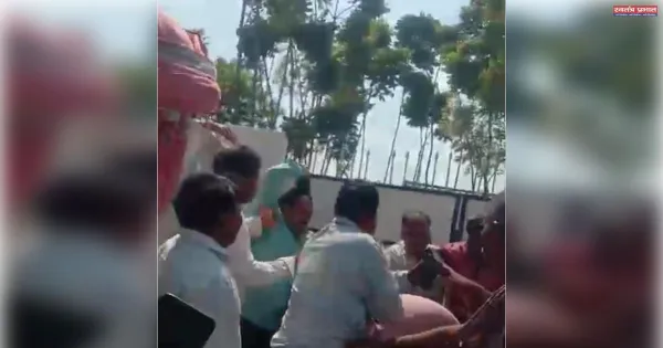 Ghazipur- A video is being said to be showing hooliganism by the nephew of Sadar MLA of the district Jai Kishan Shahu, in which the MLA’s nephew is seen beating a young man with slippers. It is being told that the person seen beating a young man with slippers in the video is none other than Manish Sahu, nephew of Samajwadi Party MLA Jaikishan Sahu from Ghazipur. Who is beating a young man with slippers.