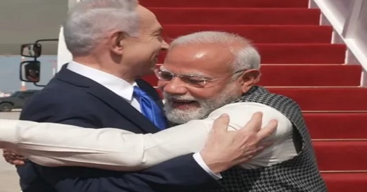 Tel Aviv. Prime Minister Narendra Modi has reached Israel on a two-day visit. He was warmly welcomed by Israeli Prime Minister Benjamin Netanyahu along with his wife Sara Netanyahu at Ben Gurion Airport. The Indian Prime Minister was also given a guard of honour.
