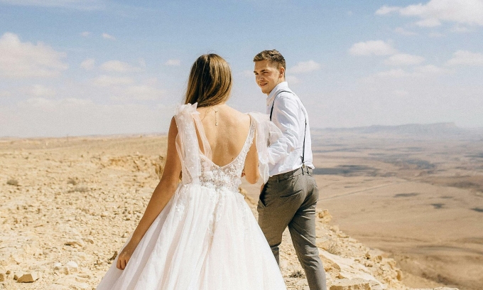 Newlyweds battle sandstorm during wedding photo shoot