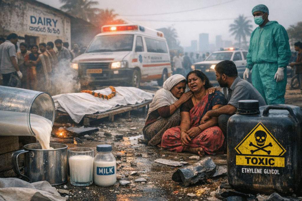 The deaths occurred in Lalacheruvu, Chowdeshwarannagar, and Swarupnagar since mid-February. Victims reportedly consumed milk tainted with ethylene glycol, a toxic chemical known to cause multi-organ failure. At least four others remain hospitalised with similar symptoms.