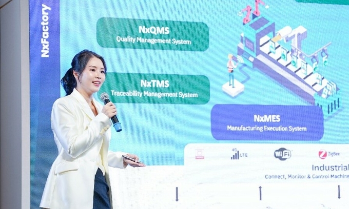 Trang Nguyen Minh (Mira), CEO NTQ Factory, introduced a comprehensive smart factory ecosystem for Vietnamese manufacturers. Photo courtesy of NTQ |