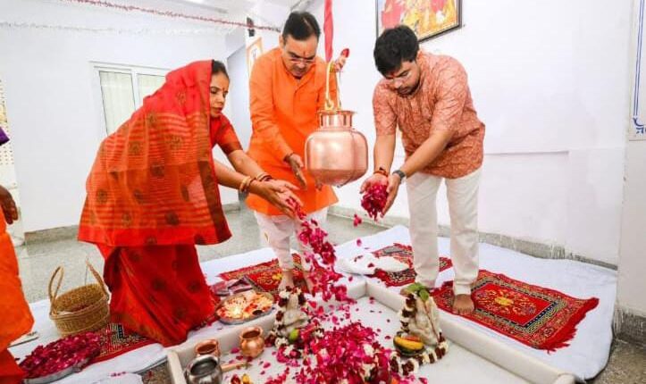On the holy festival of Mahashivratri, Chief Minister Shri Bhajan Lal Sharma today worshiped Devadhidev Mahadev as per the rituals and performed Jalabhishek at Maa Rajarajeshwari Temple located at the Chief Minister’s residence. On this occasion, he wished for the happiness, prosperity and prosperity of the people of the state and received blessings from Lord Bholenath.