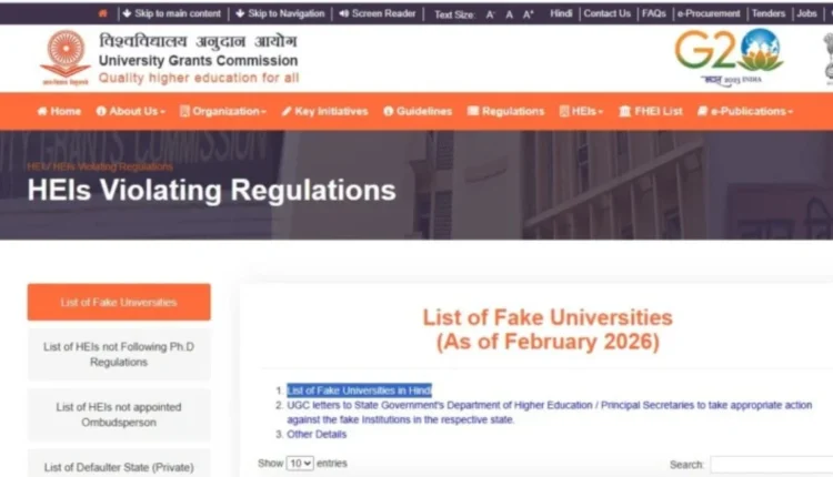 What does UGC say on Fake University List 2026?