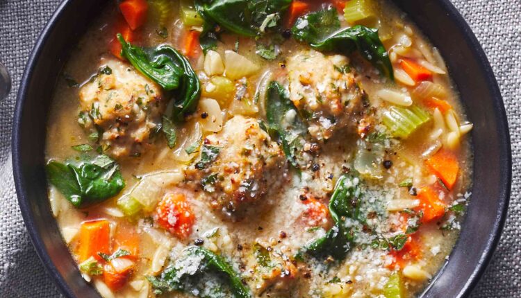Forget the marble-size meatballs you find in many versions of this Italian Wedding Soup. In this easy recipe, they’re full-size, full-flavored and plenty filling.