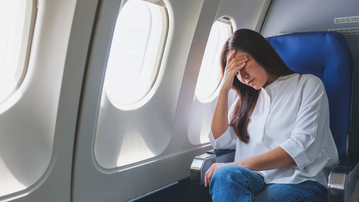 woman talking to flight attendant after tapping her to get her attention Artit Wongpradu | Shutterstock