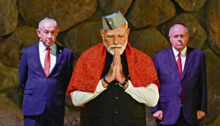 Prime Minister Narendra Modi pays tribute to the victims of the Holocaust at Yad Vashem, the World Holocaust Remembrance Centre, in Jerusalem, Israel on Thursday. Photo: IANS