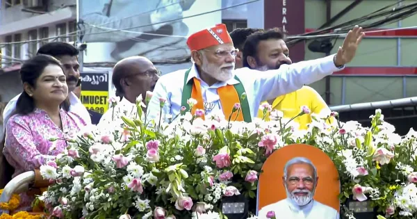 Earlier, Modi reached Kuttanelloor helipad, where he was welcomed by senior BJP-NDA leaders. Later, they went by road to the starting point of the roadshow. He had come to Thrissur after attending a public meeting in neighboring Palakkad district. Before the assembly elections to be held in the state on April 9, the alliance is trying to strengthen its hold through vigorous political campaigning and local cultural contacts.
