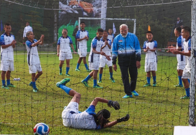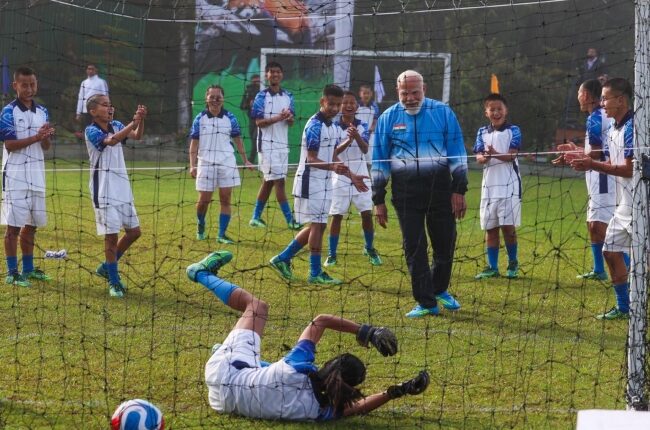 Gangtok: PM Modi was seen scoring goals among the youth in the football field early in the morning.