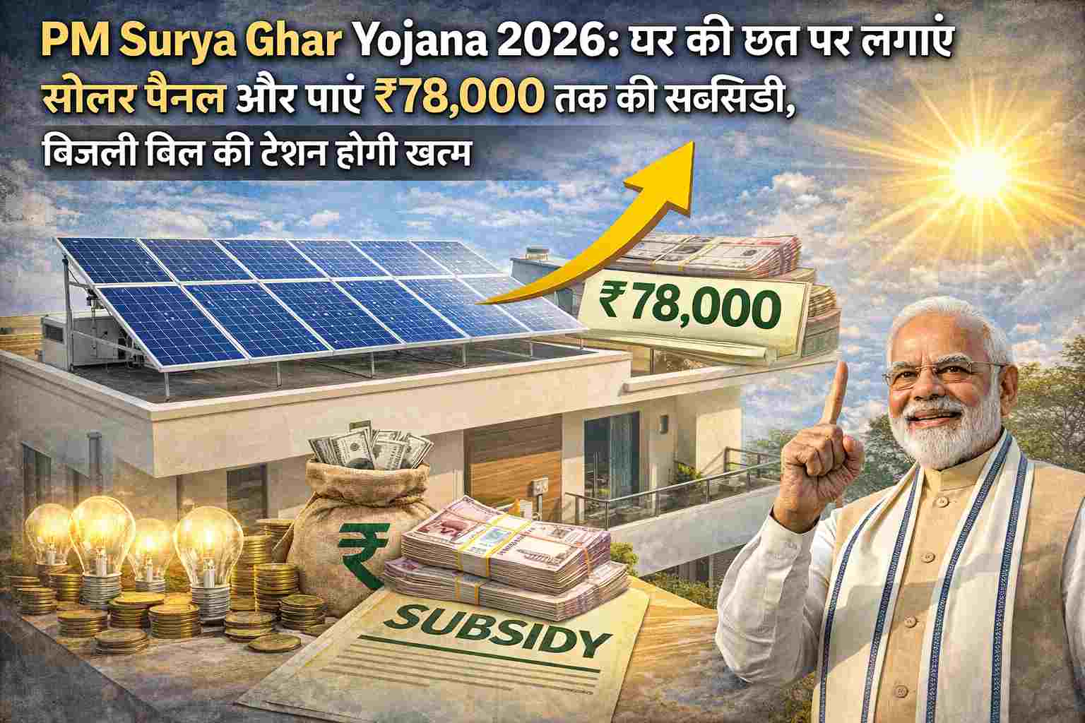 PM Surya Ghar Yojana 2026: Install solar panels on the roof of the house and get subsidy up to ₹ 78,000, the tension of electricity bill will end.