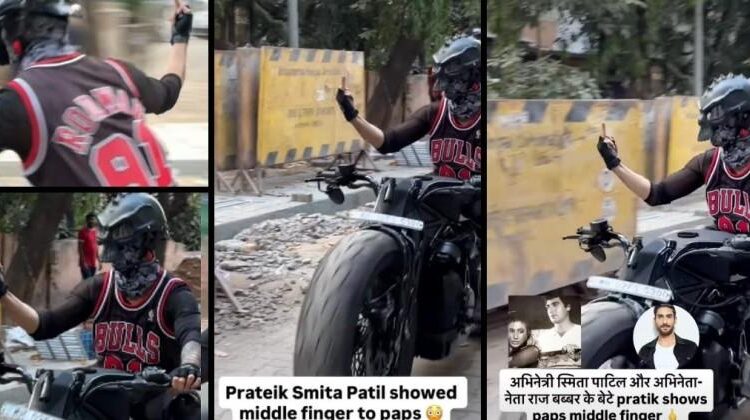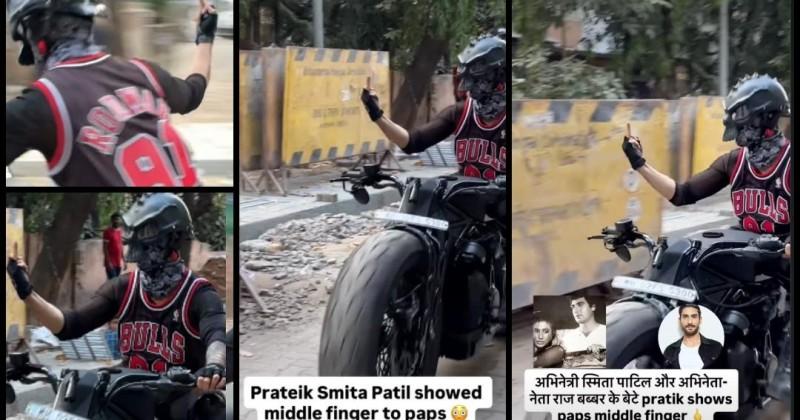 A viral video shows Prateik in full bike gear helmet, gloves, riding his bike while paps filmed him. The actor flashed his middle finger at photographers.