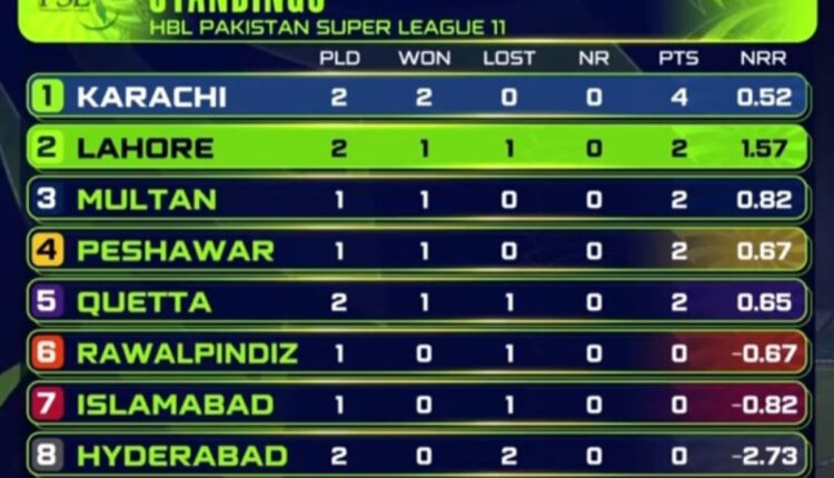 Karachi’s net run-rate stands at 0.52, while Lahore Qalandars are at 1.57. Multan and Peshawar are in third and fourth spot, respectively.