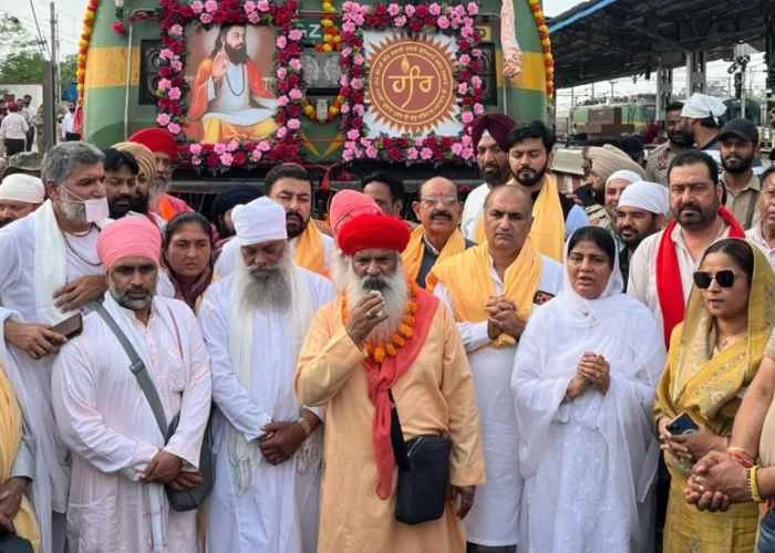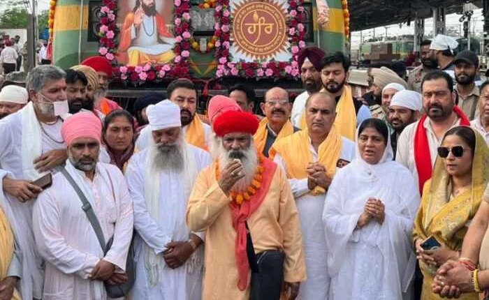 Punjab Horticulture, Freedom Fighters and Defense Services Welfare Minister Mohinder Bhagat and Advisor to the Tourism and Cultural Affairs Department Deepak Bali today flagged off the Damri Yatra for Haridwar by a special train from the local City Railway Station under the guidance of Sant Nirmal Dass Ji Jode Wale, Sant Pragat Nath and other saints and spiritual leaders. On this occasion, Chabbewal MLA Dr. Ishank Kumar and Chairman District Planning Committee Amritpal Singh were also present.