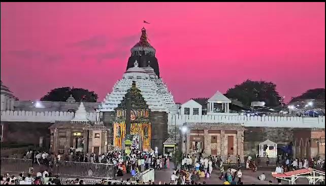 A rare and breathtaking spectacle was witnessed in Puri, Odisha, today, as the sky transformed into a canvas of pink, casting a surreal ambiance around the revered temple of Lord Jagannath, the Srimandira.
