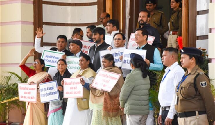 PATNA: Political tensions escalated in Bihar on Wednesday as several Rashtriya Janata Dal (RJD) Members of the Legislative Council (MLCs), led by Leader of the Opposition Rabri Devi, staged a protest against the Nitish Kumar-led government outside the Bihar Legislative Council.